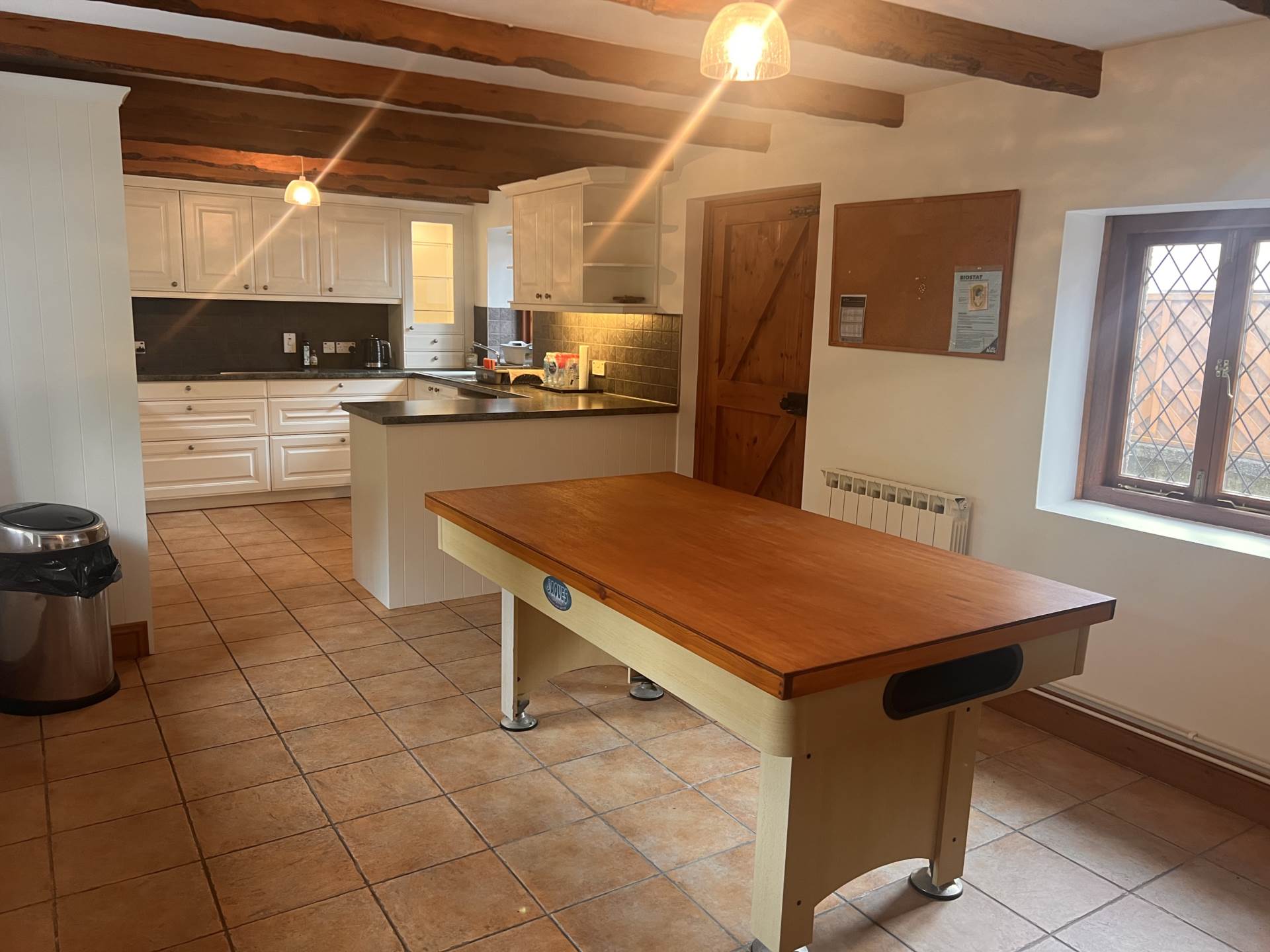 Wood burning stove. Double doors leading out to the courtyard and garden.
